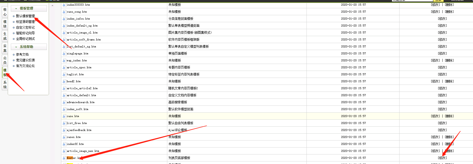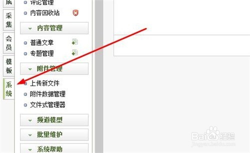 2、進入dede織夢后臺左側菜單欄"系統"菜單,如圖所示。