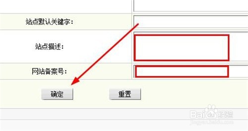 4、找到"網站備案號"填寫你自己備案號,完畢后點擊"確定"保存更改,如下圖所示。